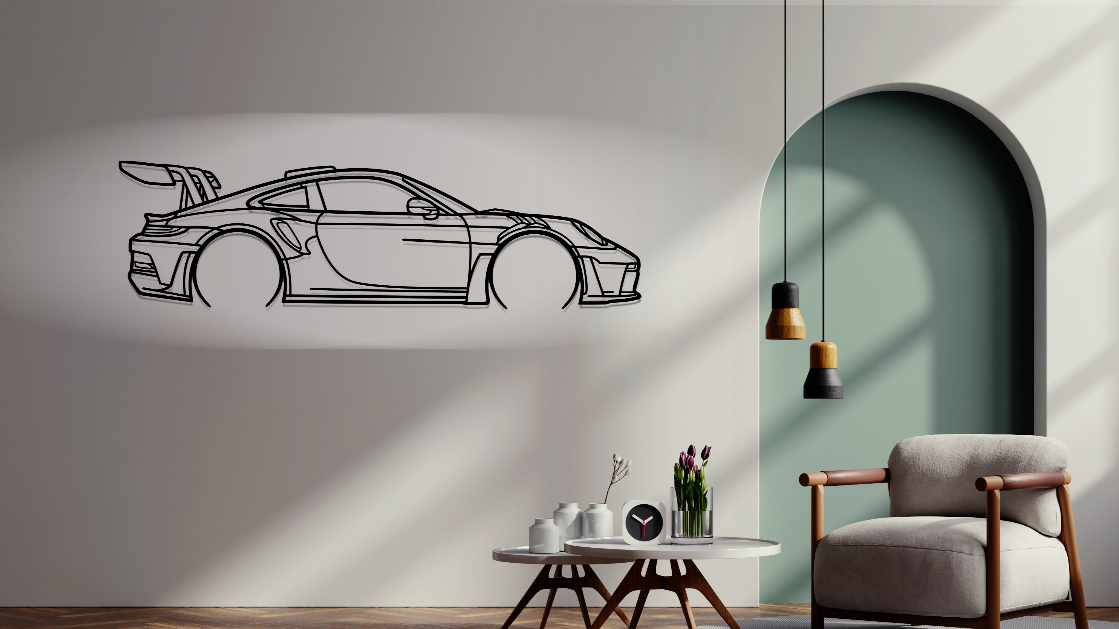 Porsche 911 992 GT3 RS (2022-2025) - Side View - Metal Silhouette
