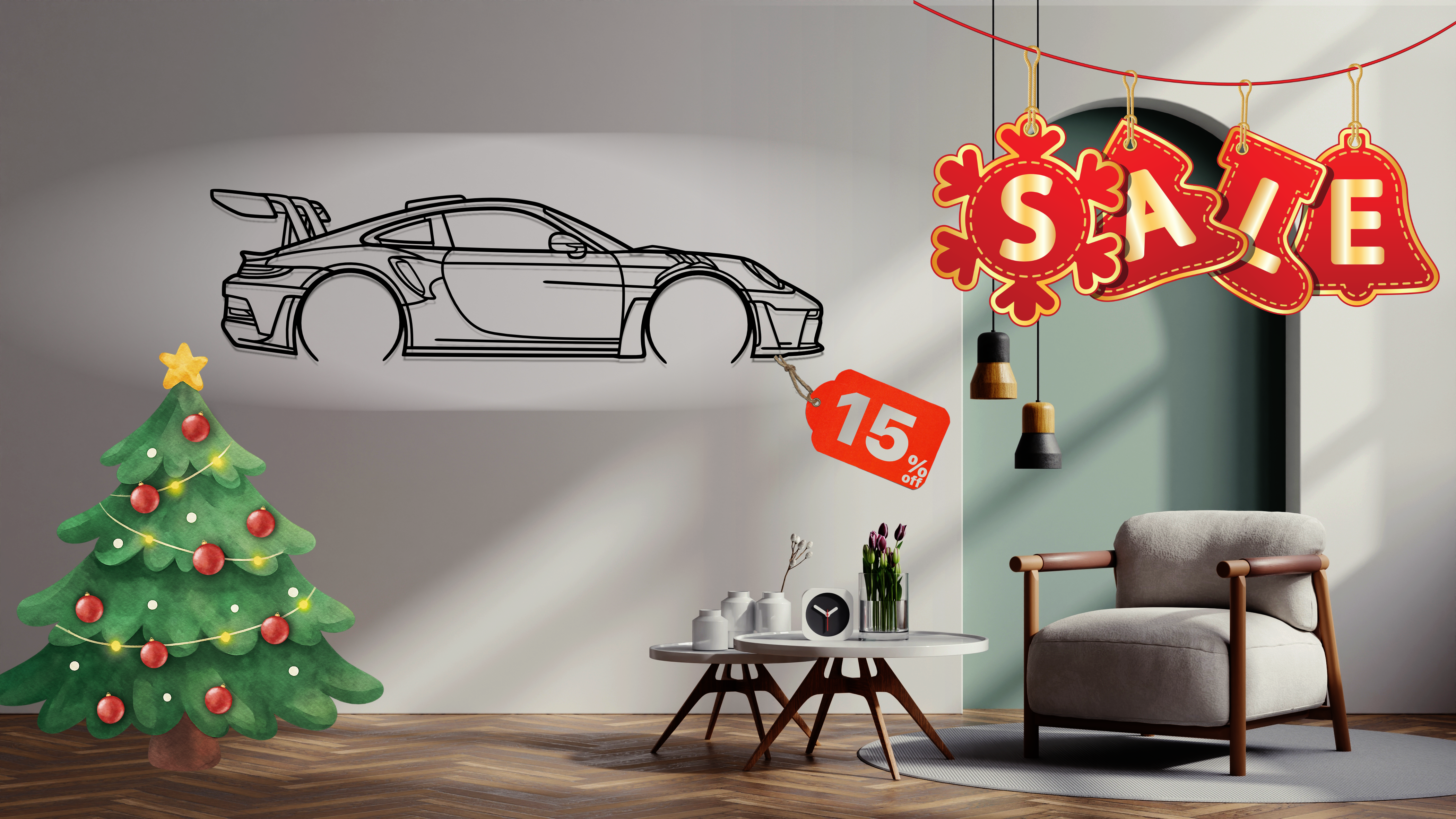 Porsche 911 992 GT3 RS (2022-2025) - Perspetiva Lateral - Silhueta de Metal